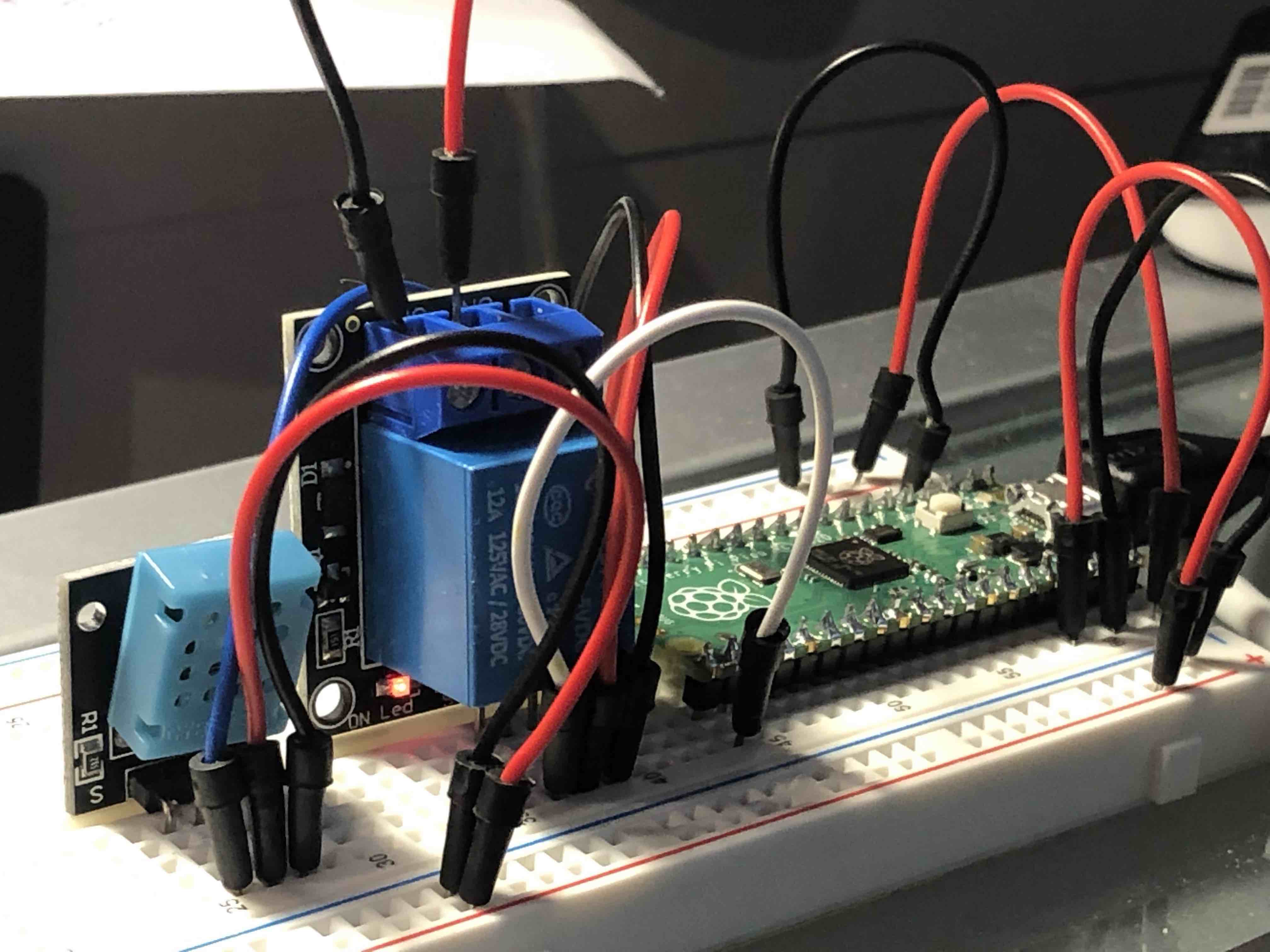 I love guitars. And I love Colorado. Unfortunately, Colorado is quite dry which can damage acoustic guitars. Using a DHT-11 digital temperature/humidity sensor, a Pi Pico/RP2040, and a relay, I built a system that monitors humidity levels and automatically controls a humidifier to keep my guitars in the happy range of 45-55% relative humidity.